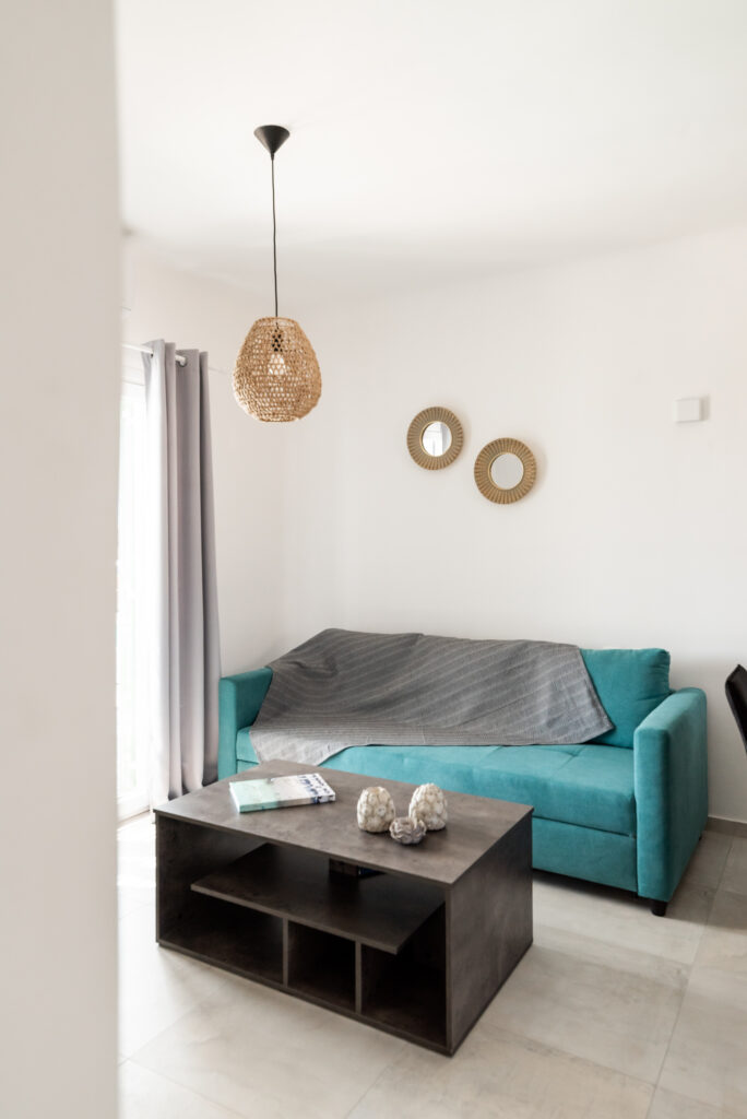 The Villas consists of two separate houses 50sqm each house, 100sqmin total. Accommodation experience, two spacious living rooms with lounge area, two dining tables, two fully equipped open-plan kitchens, two double bedrooms with Queen-sized beds & two bathrooms with shower. Capacity is for 6 people.