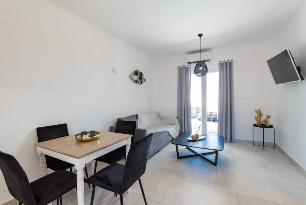 Admire the Cycladic sky from the expansive terrace, where the sun and stars weave a tapestry over the Aegean Sea.